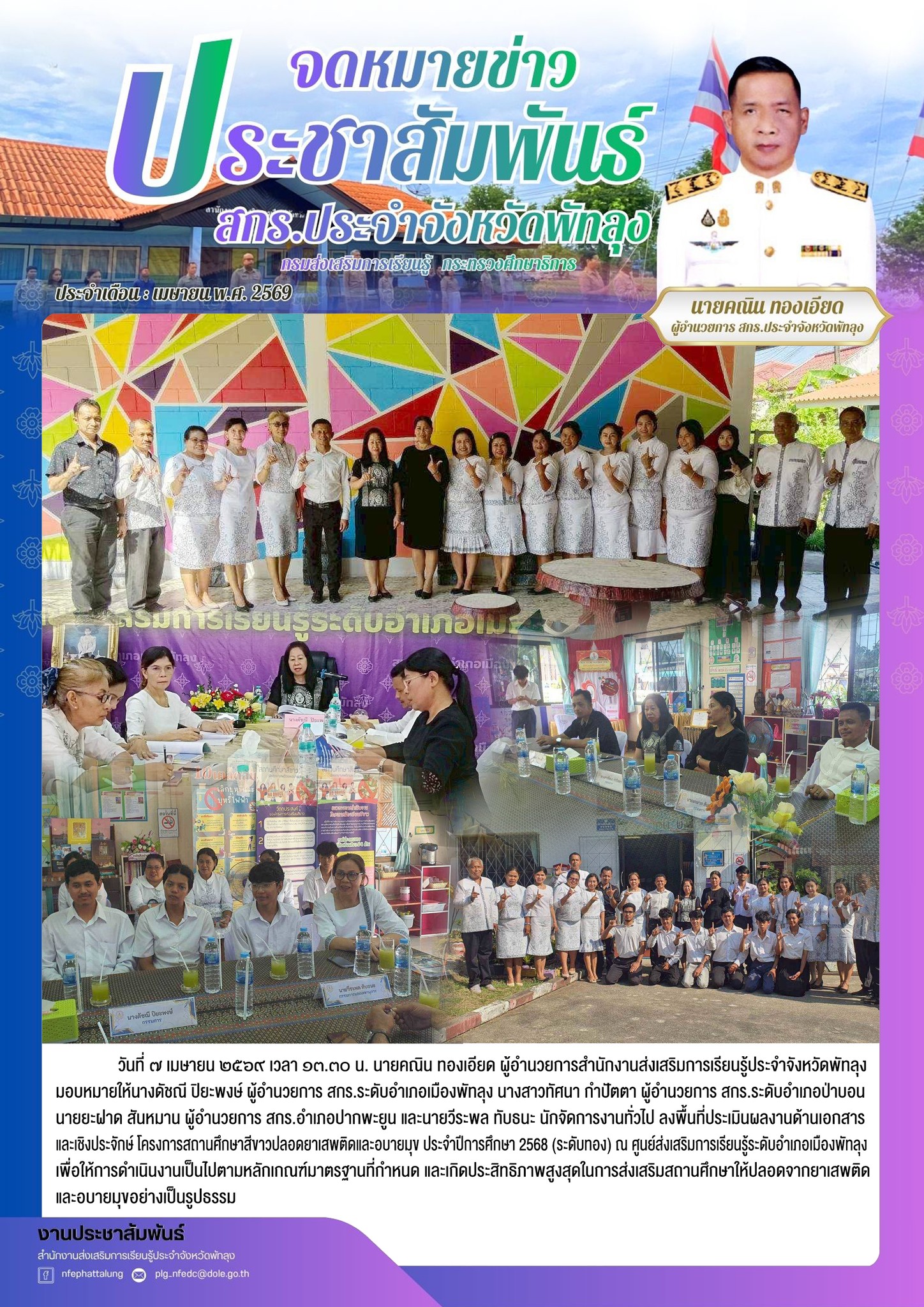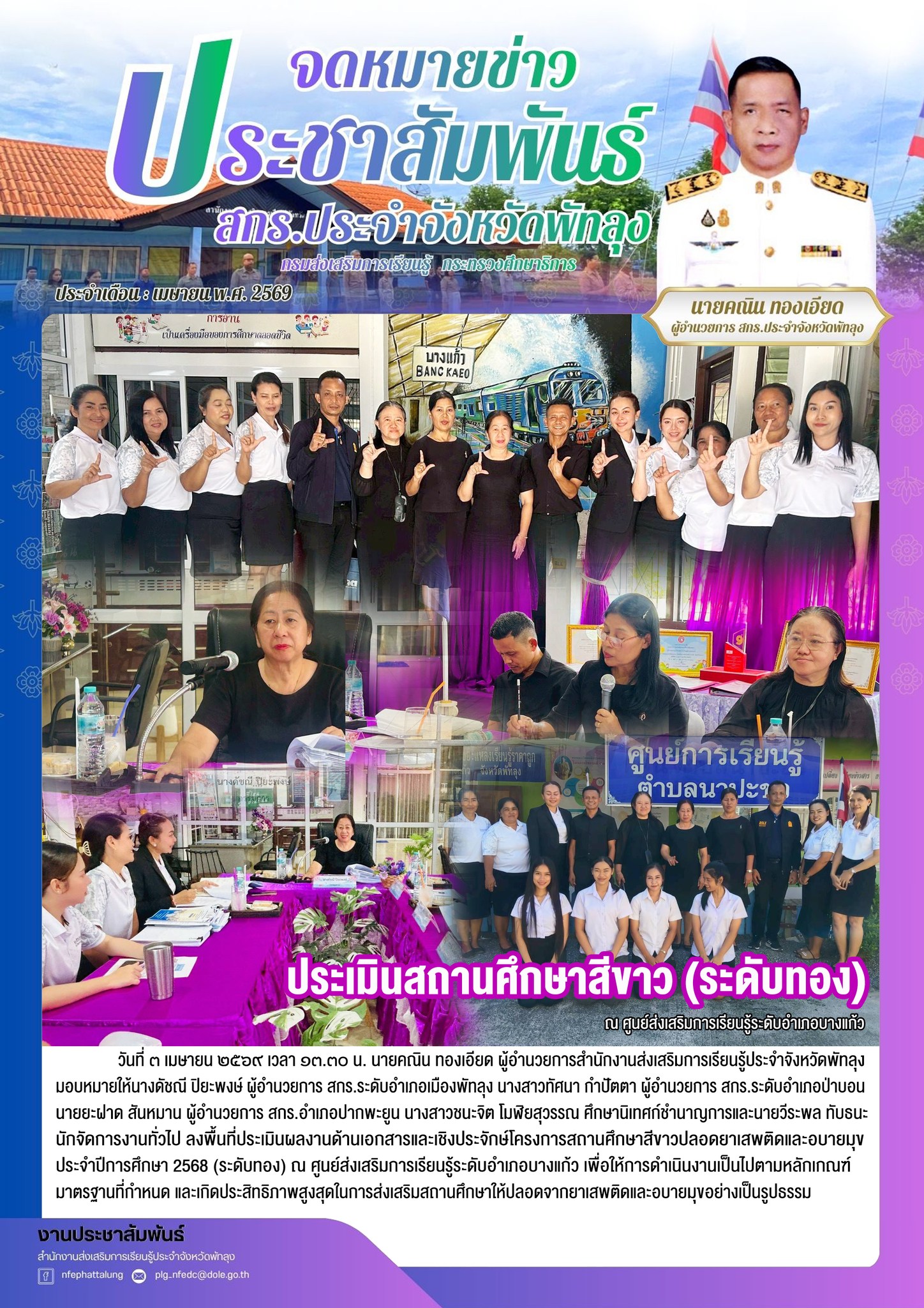 ลงพื้นที่ประเมินผลงานด้านเอกสารและเชิงประจักษ์โครงการสถานศึกษาสีขาวปลอดยาเสพติดและอบายมุข ประจำปีการศึกษา 2568 (ระดับทอง) ณ ศูนย์ส่งเสริมการเรียนรู้ระดับอำเภอเมืองพัทลุง