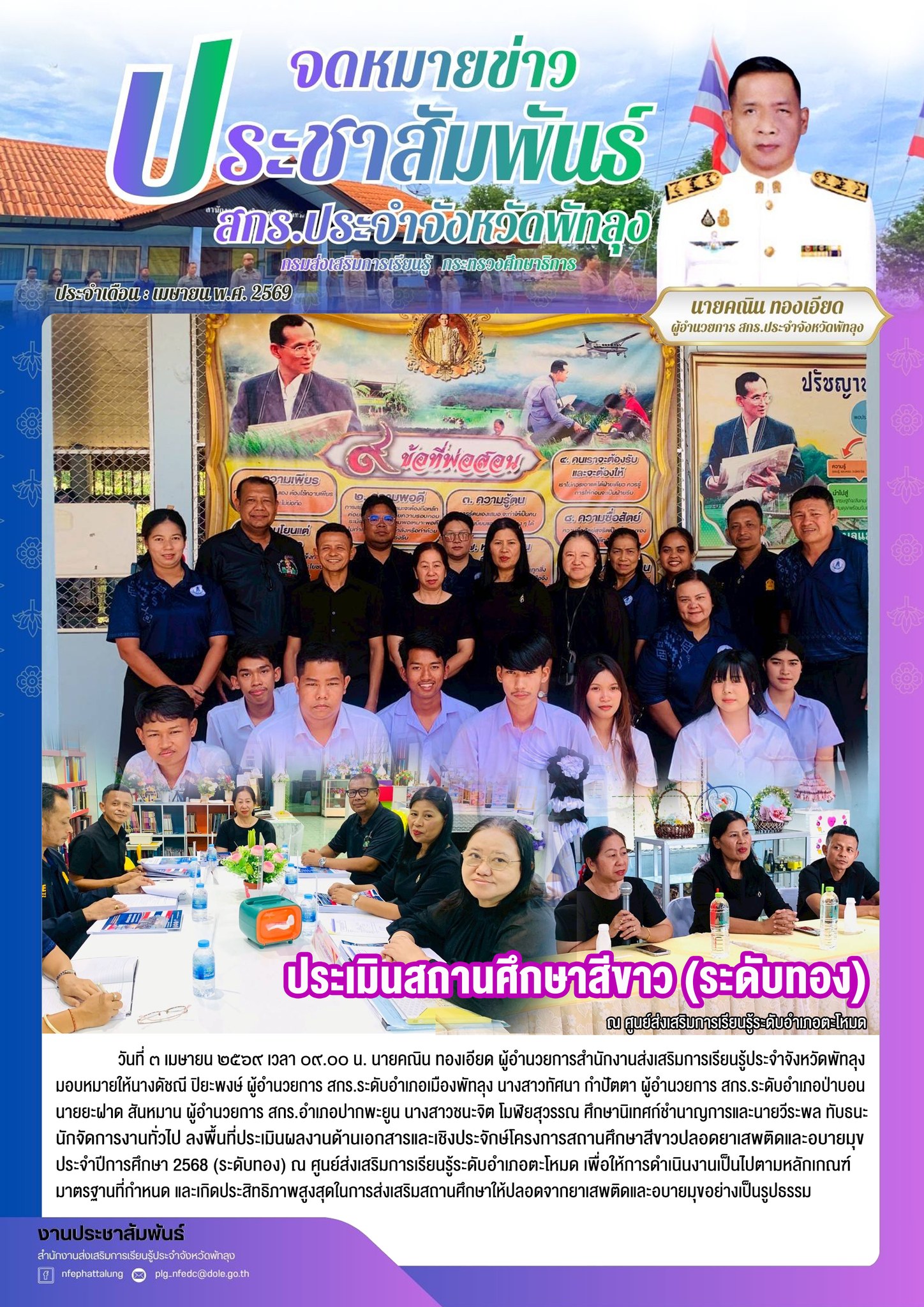 ลงพื้นที่ประเมินผลงานด้านเอกสารและเชิงประจักษ์โครงการสถานศึกษาสีขาวปลอดยาเสพติดและอบายมุข ประจำปีการศึกษา 2568 (ระดับทอง) ณ ศูนย์ส่งเสริมการเรียนรู้ระดับอำเภอตะโหมด