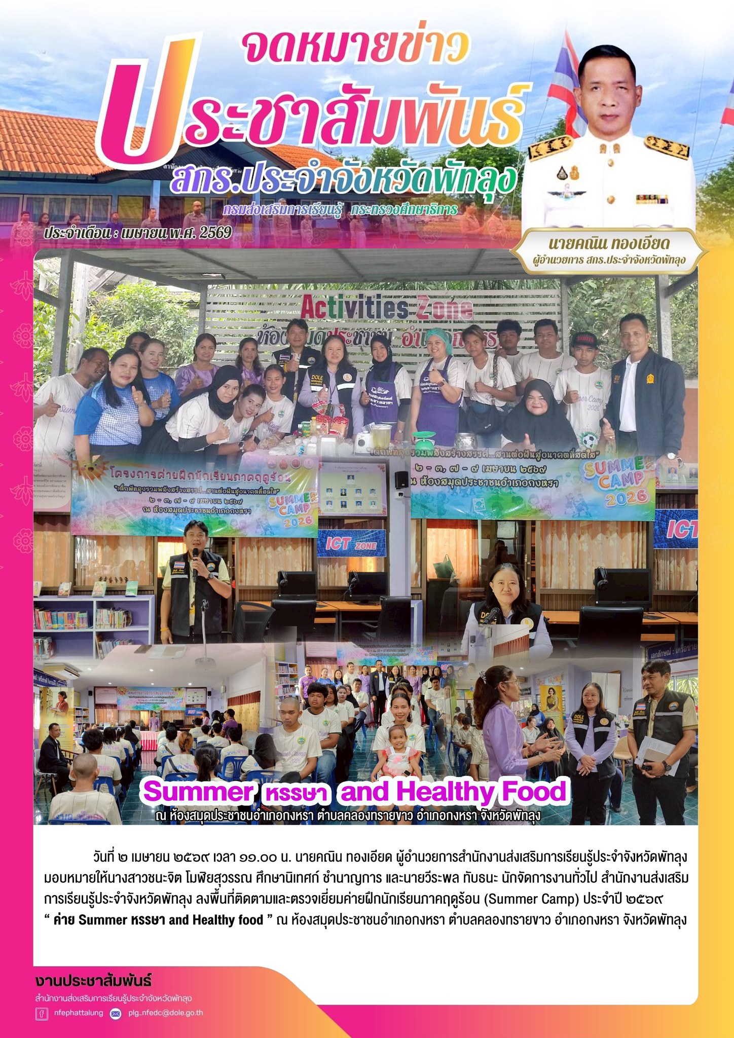 ลงพื้นที่ติดตามและตรวจเยี่ยมค่ายฝึกนักเรียนภาคฤดูร้อน (Summer Camp) ประจำปี ๒๕๖๙ “ ค่าย Summer หรรษา and Healthy food ” ณ ห้องสมุดประชาชนอำเภอกงหรา